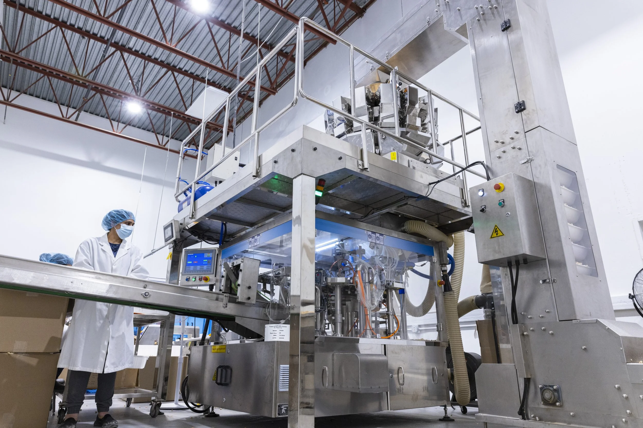 A fully automated packaging plant facility capable of packing/filling up to 10 million SUP pouches ranging from 8 grams up to 3 kilos